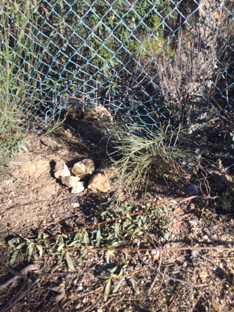 We plodded on with our walk checking out the Sistas relocation programme. This stuff seems to grow at an alarming rate and is often used to make therapeutic oil. We don’t plan to process it in any way, but find that it has a beautiful little flower and makes a good barrier for animals wanting to get on to our land. We took note of the parts of the fence that had been damaged to due foxes, wild boars or other animals and in some cases could clearly see a pathway where it had been used as a thoroughfare. Wanda seems to pay particular attention to sniffing at these points so we have a good idea that animals are still using them to get on to the farm.