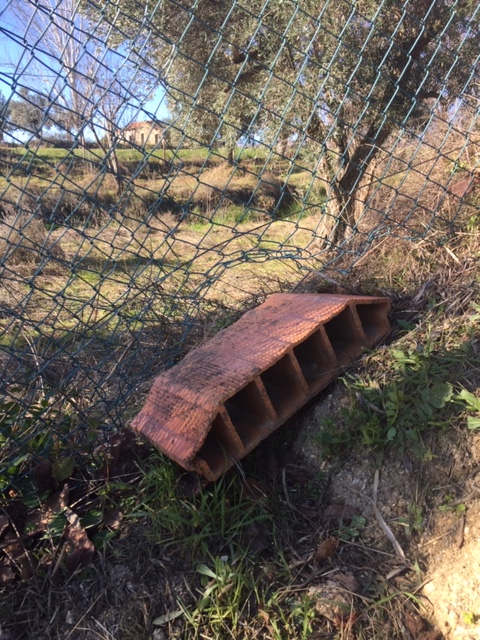 We are trying hard to adapt to the Portuguese way of life, a part of which is to throw away as little as possible and re-purposing anything that has bee discarded. Mark has found an old piece of wire fencing, some rods and some wire and is planning on repairing the holes, and placing rods and wire to keep it firm. He then plans t0 re-position the Sistas that he has removed from elsewhere on the farm to protect the fence from our four legged intruders.