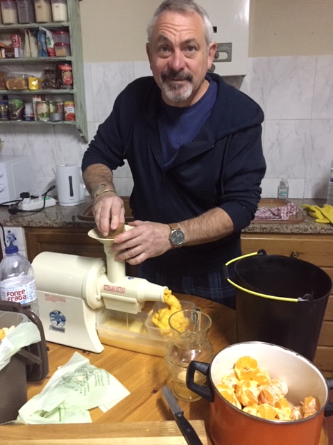 The evenings entertainment was to finish off juicing the windfall oranges that we didn’t get done yesterday. We have got quite a production line going and my original doubts about needing to peel before juicing no longer a concern. We bought a beast of a juicer in auction back home for about £20 a year ago and it is perfect for the job. A bit annoying having to pack it all away in its box each time but once we have a walk in cupboard this won’t be a problem.