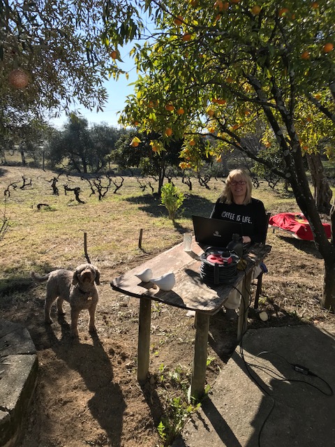 Today was a day in the office for me and as is was such a lovely day, I was able to work outside. Wanda seems to be my shadow these days – not sure if it’s because I give her more treats or if its because she gets to lie in the sun when I’m working. She’s taken really well to being a farm dog and seems to have little short cuts to get around the place. I’ve noticed sometimes when I’ve set off on the tractor to go to a different terrace that she’s arrived there way ahead of me. Usually there is a lot of ball throwing when were out on the land which means that by tea-time she is tired out and sleeps all night. We must have brought with us a dozen balls for her to chase and I think ten of them are dotted around the Quinta.
