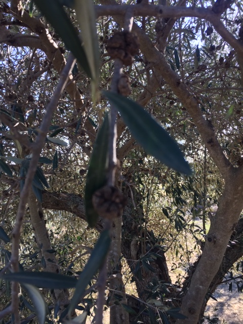A few weeks ago, when we first started our monumental task of cutting back the olive trees, we noticed lots of little galls or knots on the branches. It seemed that most of our trees had these to varying degrees and our mission to find out the best way to treat this came up with conflicting theories.