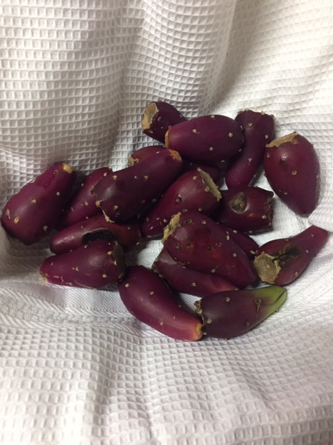 Walking around our Quinta, we have some large cacti that produce little prickly purple fruits. I recognised these from my trips to Morocco with the Dental Mavericks as being “Prickly Pears” so we decided we would harvest some of ours and look into how to prepare and eat them. Again, we headed to the internet and found quite a wealth of information. It would seem that they can be used to make jams, jellies, smoothies or just be peeled and eaten as a fruit. They are high in anti-oxidants, good for liver health, rich in vitamin C, Calcium, and Potassium, high in fibre and low in carbohydrates. And, with the added bonus of only 40 calories each we thought these were a fruit well worth sampling.