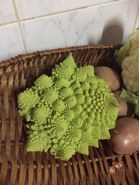 The other thing new to our taste buds was the Romanesco cauliflower. With its eye-catching appearance, we soon spotted this during our monthly trip to the shops to replenish our provisions and brought it home to try with our sausages and mash.