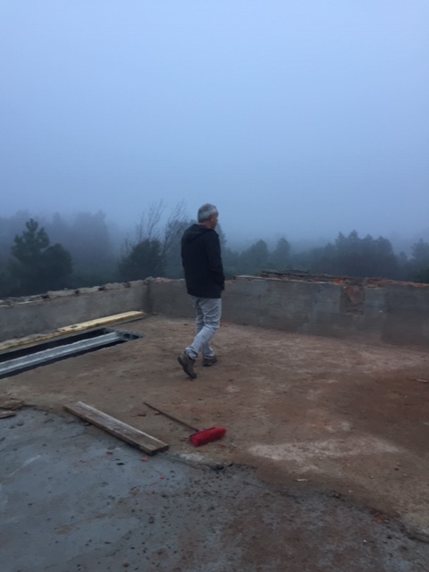 Although it meant climbing up a rickety old wooden ladder, we were able to access the new first floor of the barn conversion for the first time (our future bedroom). Unfortunately due to the heavy mist which had descended we were unable to exploit the potential of our views… to be revisited on a clearer day.