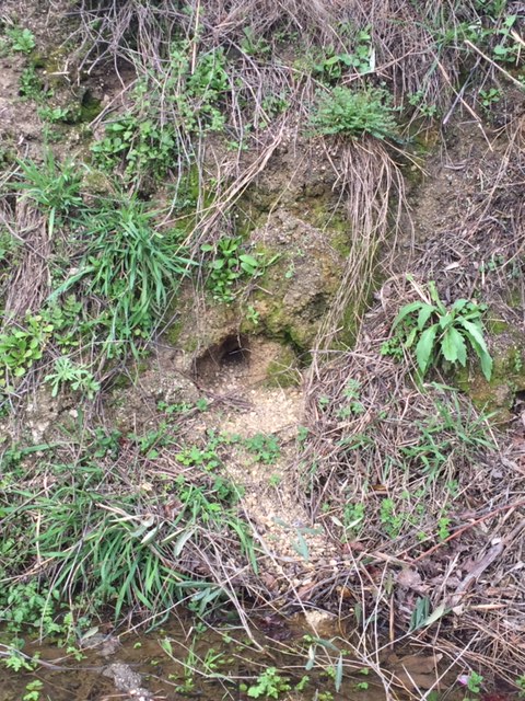 When strimming back the brambles and weeds on the terraces we noticed quite a few holes in the bank and wondered what had made them. We puzzled over why our terrace was peppered with random little holes, about an inch in diameter and tried to imagine how they had come to be. Suddenly, we saw something moving quickly into one of the holes and there we had it, a seemingly full housing estate of Fieldmice! living on the bank, near the brook and with a bountiful supply of fruit, seeds and nuts right on their doorstep.