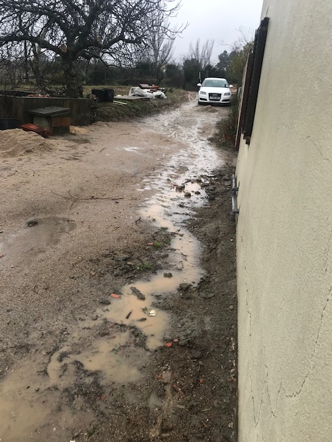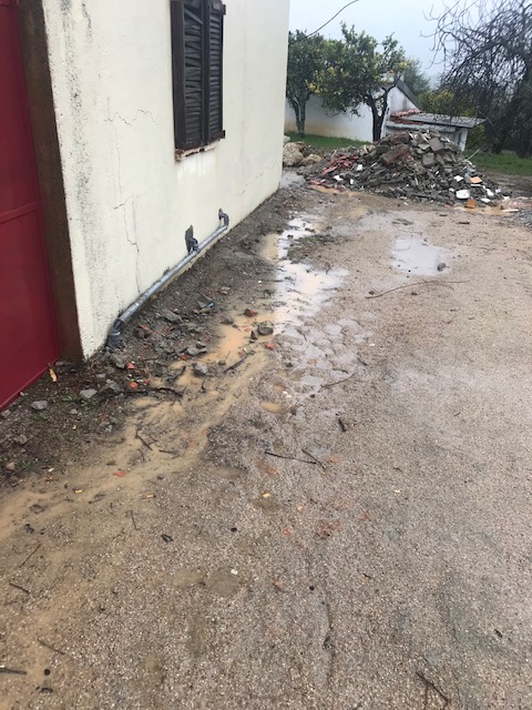 The new roof and the building work has continued over the past few days although at a much slower pace due to the adverse weather conditions. Our farm is definitely a building site with the rain filling the deep furrows made by the crane in a few hours. At one point we had a torrent of water weaving its way down from the main gates, past the olive trees and down the bank outside the annexe. This answered another puzzle as to why part of the terrace wall had collapsed – it appears that when it rains intensely it flows down to that point and causes the soil to wash away. Mark is undecided what to do about this but perhaps installing some irrigation pipes to divert the water may be an option.